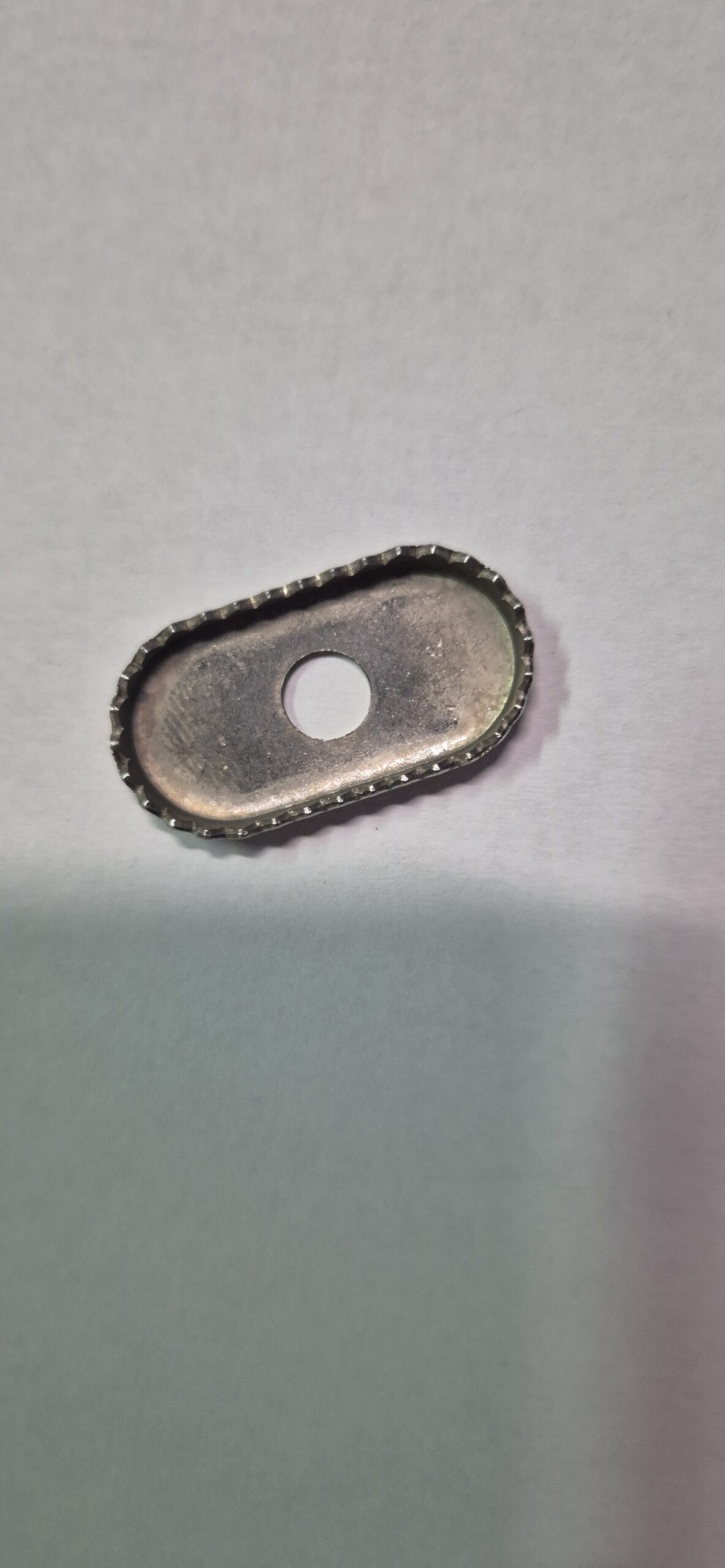 Plaquette métal, dentelée, crantée, qui limitera la rotation du footstrap.